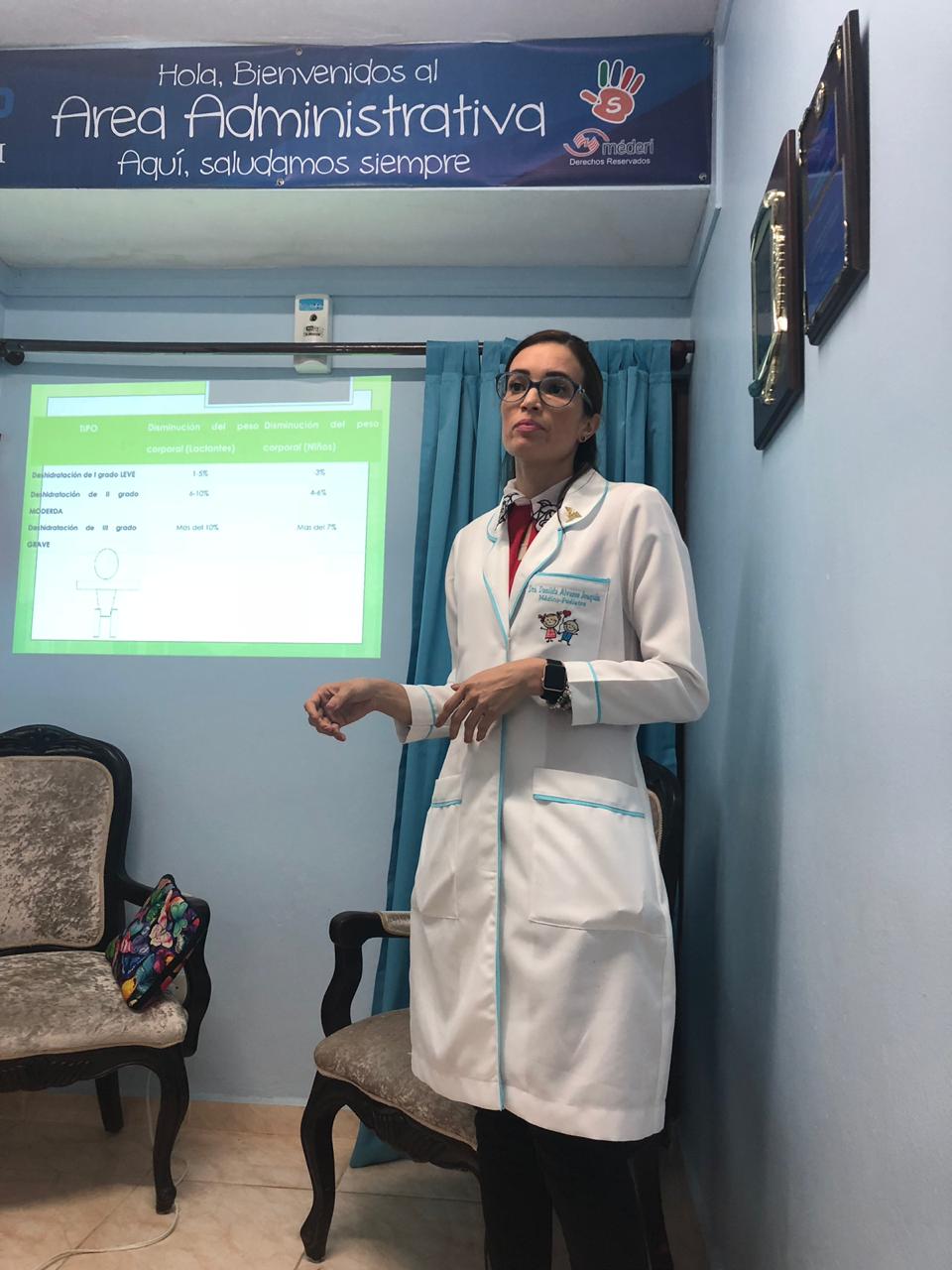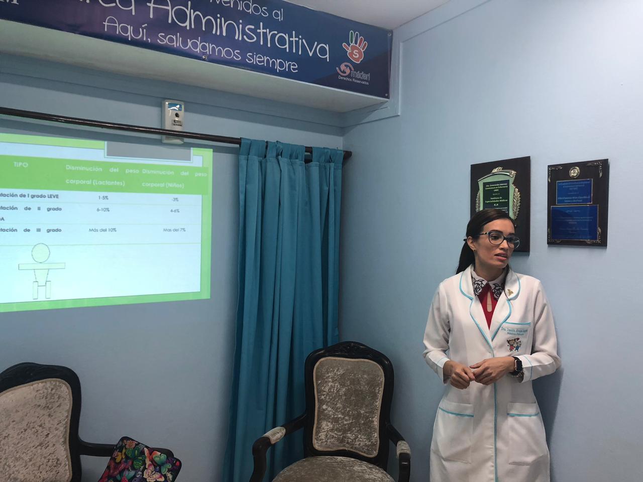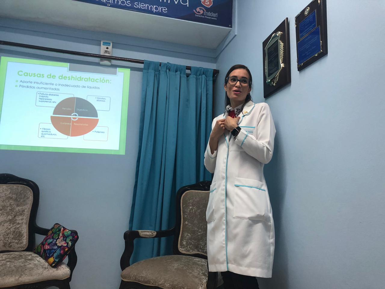 El Instituto de Especialidades Médicas en conjunto con la Dra. Danilda Álvarez, pediatra de nuestro centro realiza charla educativa dirigida al personal de enfermería acerca de la deshidratación pediátrica con la finalidad de orientar, educar y mejorar la atención que reciben nuestros usuarios.