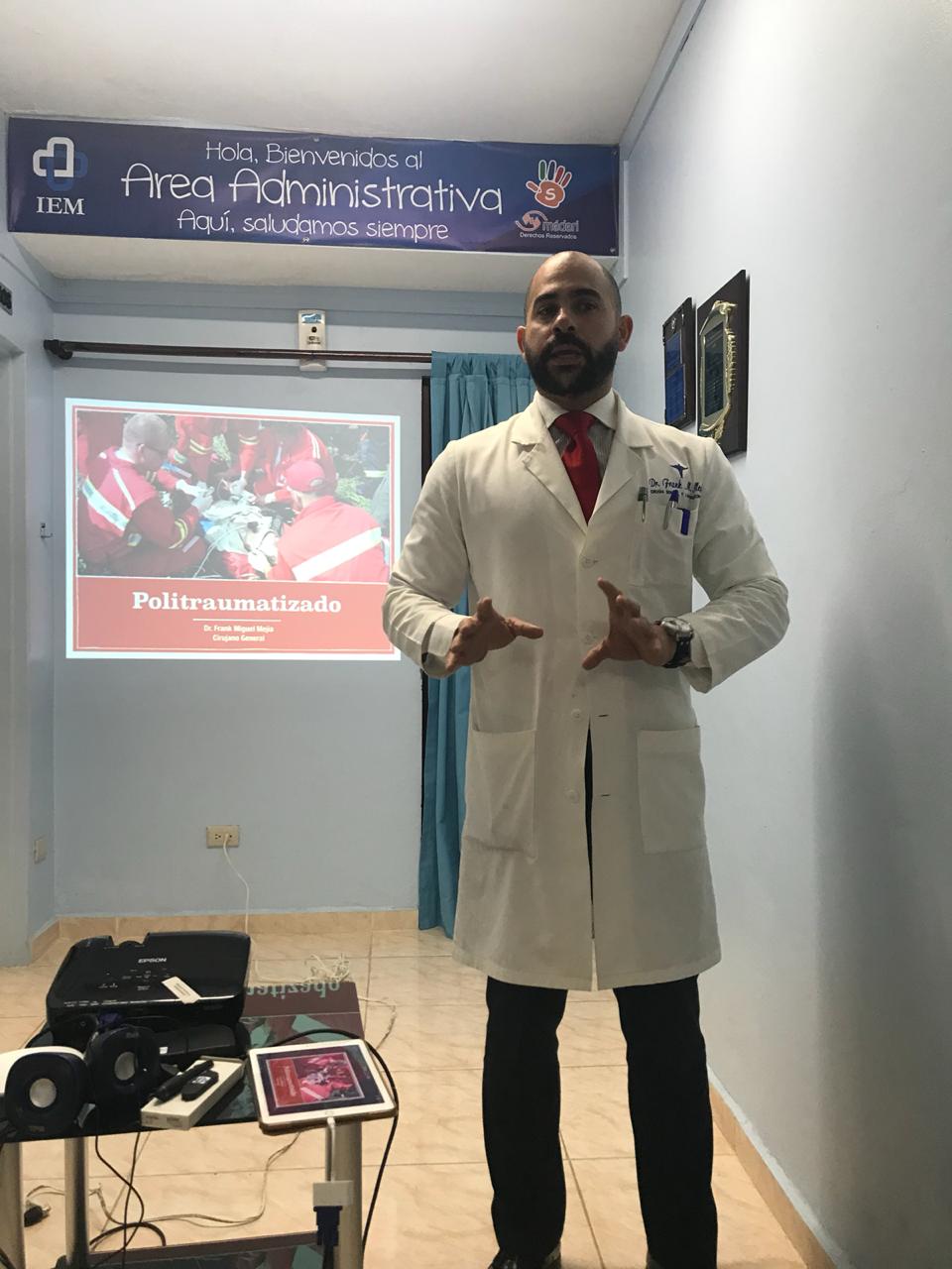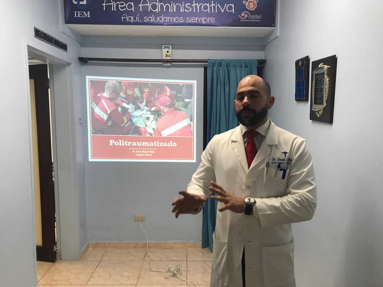 El Instituto de Especialidades Médicas en conjunto con el Dr. Frank Mejía cirujano general y laparoscopista de nuestra institución realiza charla educativa sobre el manejo del paciente politraumatizado con la finalidad de orientar y mejorar la calidad de la atención que reciben nuestros usuarios.